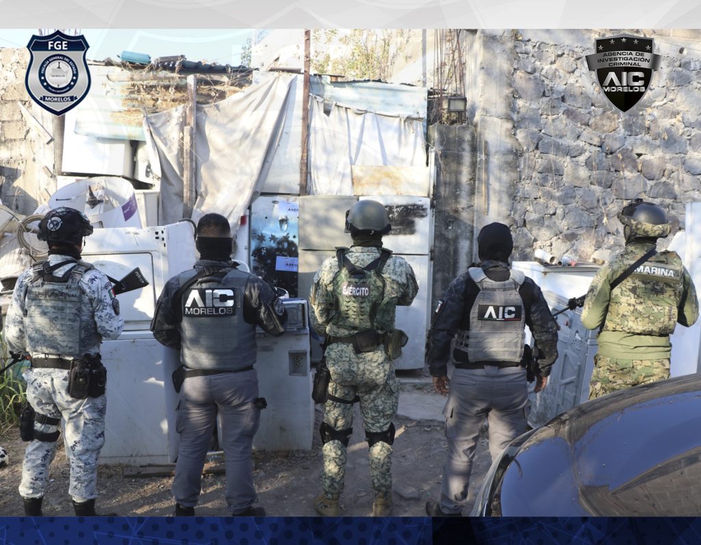 Agentes de la Agencia de Investigación Criminal (IAC) desarrollaron orden de cateo en un domicilio de la colonia Lomas del Carril, municipio de Temixco, donde aseguraron a dos personas, indicios balísticos y material similar a sustancias ilícitas.